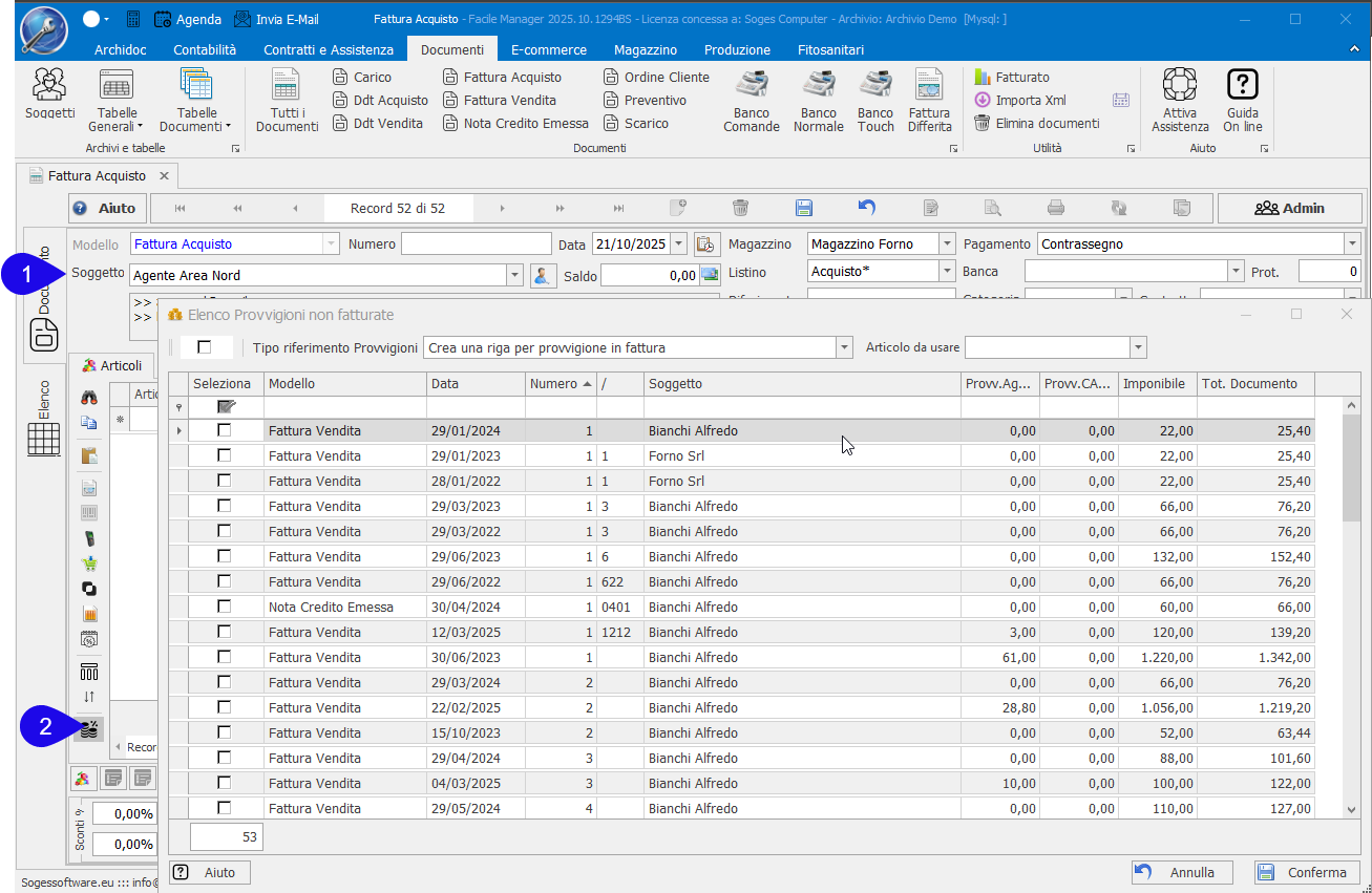 Nella gestione delle provvigioni, arriva il momento in cui l'agente invia la fattura delle sue provvigioni. Dopo aver inserito o acquisito la fattura dell'agente, è possibile richiamare le provvigioni che sono state generate nella distinta provvigioni, con il duplice obbiettivo: