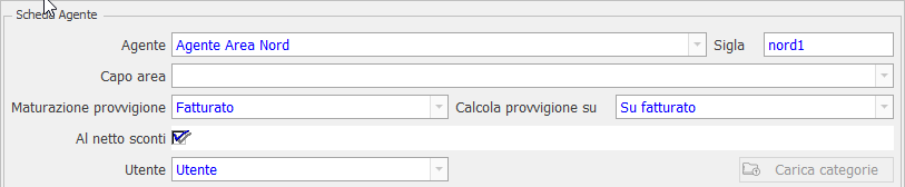 - Capo area: selezionare un'altro agente che ha funzioni di capo area per l'agente che si sta caricando